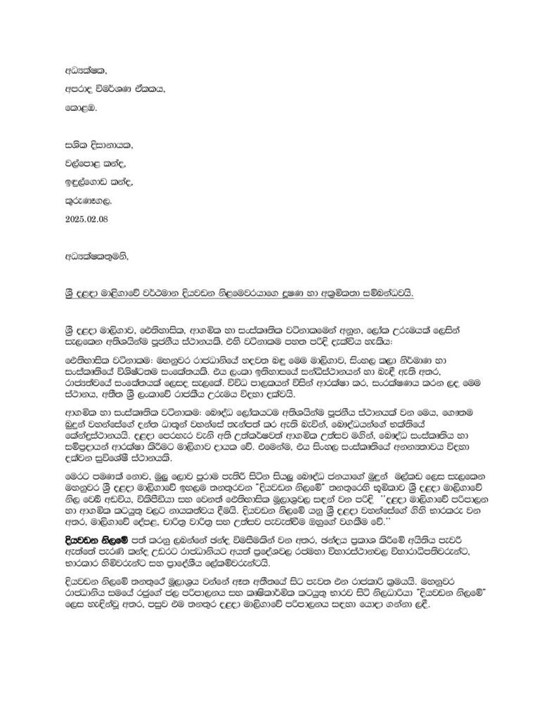 සමාජ මාධ්ය ක්රියාකාරිකයෙකු වන සශික දිසානායක විසින් මෙම ලිපිය යොමු කර ඇති බවයි වාර්තා වන්නේ.
