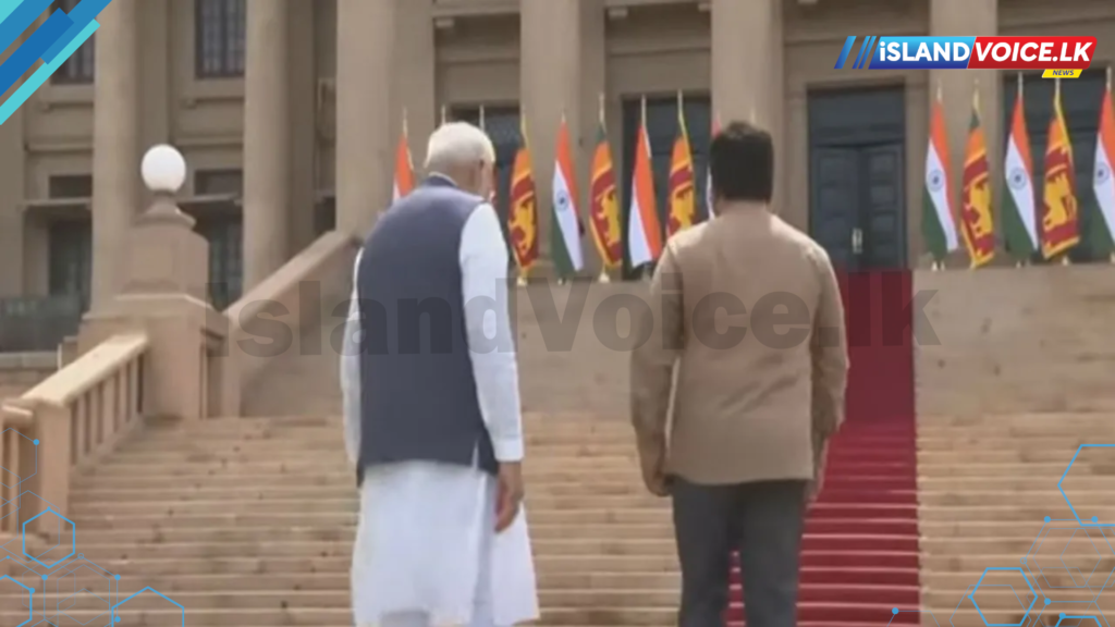 දිවයිනට පැමිණ සිටින ඉන්දීය අග්රාමාත්ය නරේන්ද්ර මෝදි මහතා අද (05) පෙරවරුවේ ජනාධිපති කාර්යාලයට පැමිණියේය ජනාධිපති කාර්යාලය වෙත පැමිණි අග්රාමාත්යවරයාව, ජනාධිපති අනුර කුමාර දිසානායක මහතා විසින් ඉතා උණුසුම් අයුරින් පිළිගන්නා ලදී. ශ්රී ලංකාව සහ ඉන්දියාව අතර ‘සියවස් මිතුදමක සෞභාග්යමත් අනාගතයකට බැඳීමක්’ යන සංකල්පය තහවුරු කරමින් මෙරටට පැමිණි ඉන්දීය අග්රාමාත්යවරයා හෙට (6) දිවයිනෙන් පිටත්ව යාමට නියමිතව ඇත.