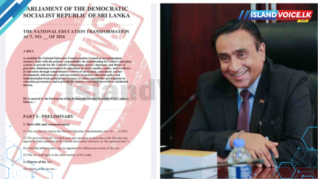 2026 ජාතික අධ්යාපන ප්රතිසංස්කරණ පිළිබඳ ව්යාජ පනත් කෙටුම්පතක් සමාජ මාධ්ය ඔස්සේ සංසරණය කිරීම සම්බන්ධයෙන් වගකිව යුතු පුද්ගලයන්ට එරෙහිව නීතිමය පියවර ගැනීමට අධ්යාපන, උසස් අධ්යාපන සහ වෘත්තීය අධ්යාපන අමාත්යාංශය තීරණය කර ඇත.